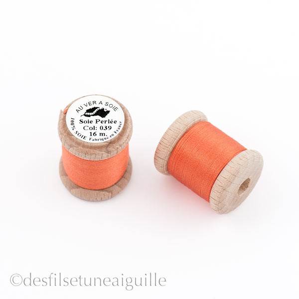 Fil de soie uni Au Ver à Soie Soie Perlée® Bobine en bois, quantité 16 m, Fabrication Française La soie perlée s'utilise en broderie traditionnelle, point compté, point de croix sur lin et soie, Hardanger. On reconnait la soie perlée sur les costumes traditionnels bretons (Glazig)