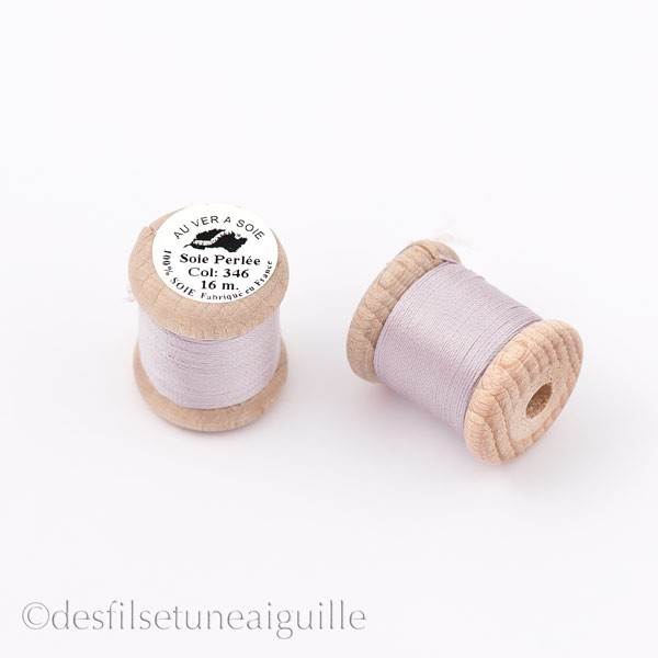 Fil de soie uni Au Ver à Soie Soie Perlée® Bobine en bois, quantité 16 m, Fabrication Française La soie perlée s'utilise en broderie traditionnelle, point compté, point de croix sur lin et soie, Hardanger. On reconnait la soie perlée sur les costumes traditionnels bretons (Glazig)