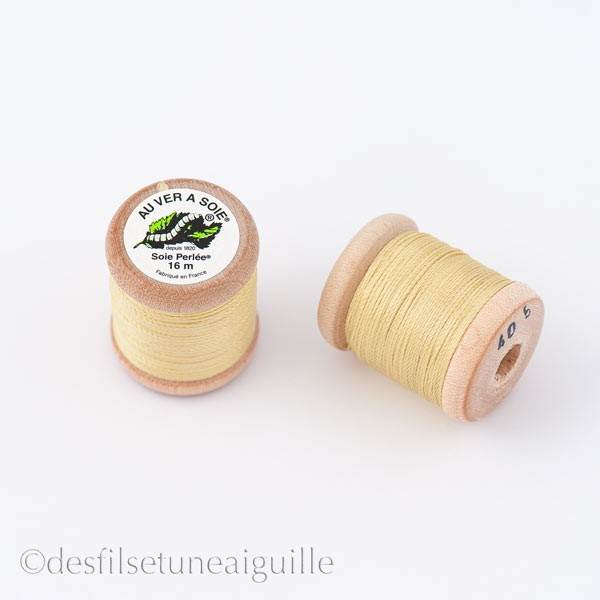Fil de soie uni Au Ver à Soie Soie Perlée® Bobine en bois, quantité 16 m, Fabrication Française La soie perlée s'utilise en broderie traditionnelle, point compté, point de croix sur lin et soie, Hardanger. On reconnait la soie perlée sur les costumes traditionnels bretons (Glazig)