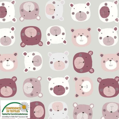 jersey de grande qualité, fond beige avec imprimé nounours rose, en 140  de large